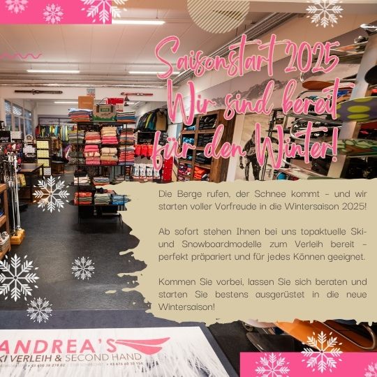 Erstklassig servicierte Wintersportausrüstung wartet auf Sie bei Andrea’s Ski Verleih & Second Hand in Premstätten. Um Ihnen und Ihrer Familie eine ausgezeichnete Beratung bieten zu können, bitten wir um telefonische Voranmeldung. Dadurch können wir immer gleichbleibenden Top-Service für jeden einzelnen Kunden / jede einzelne Kundin gewährleisten und Sie bestmöglich beraten.